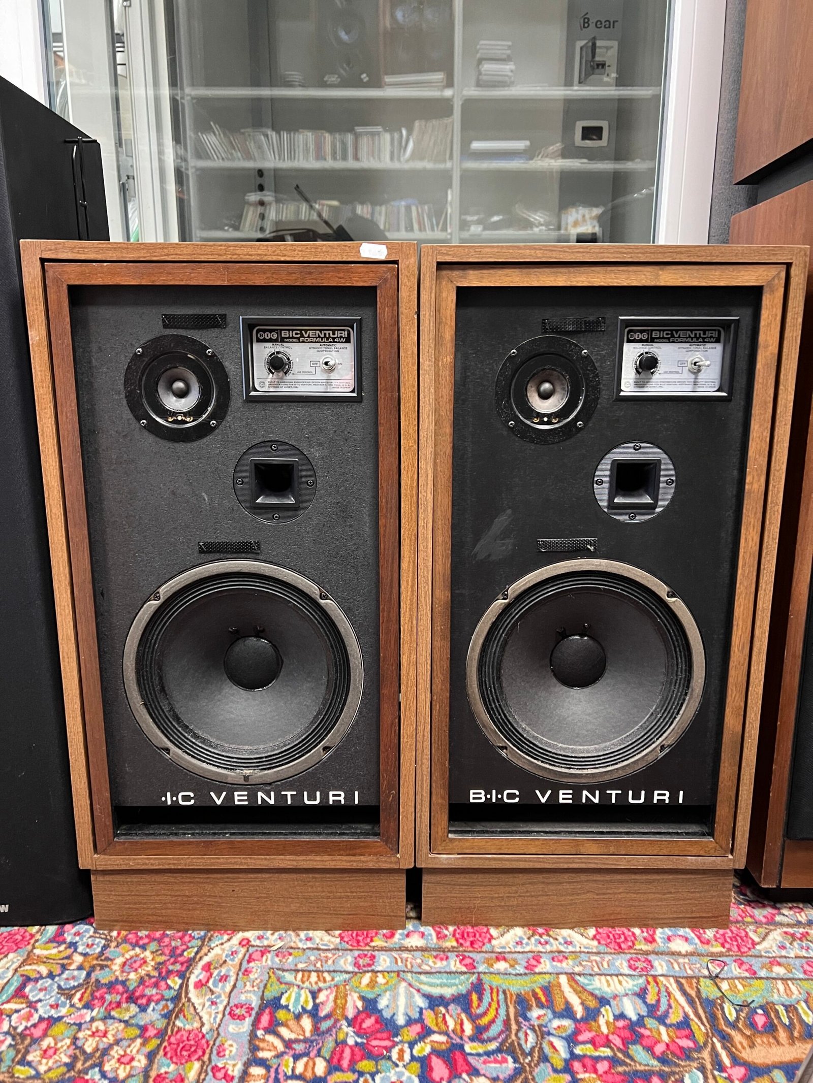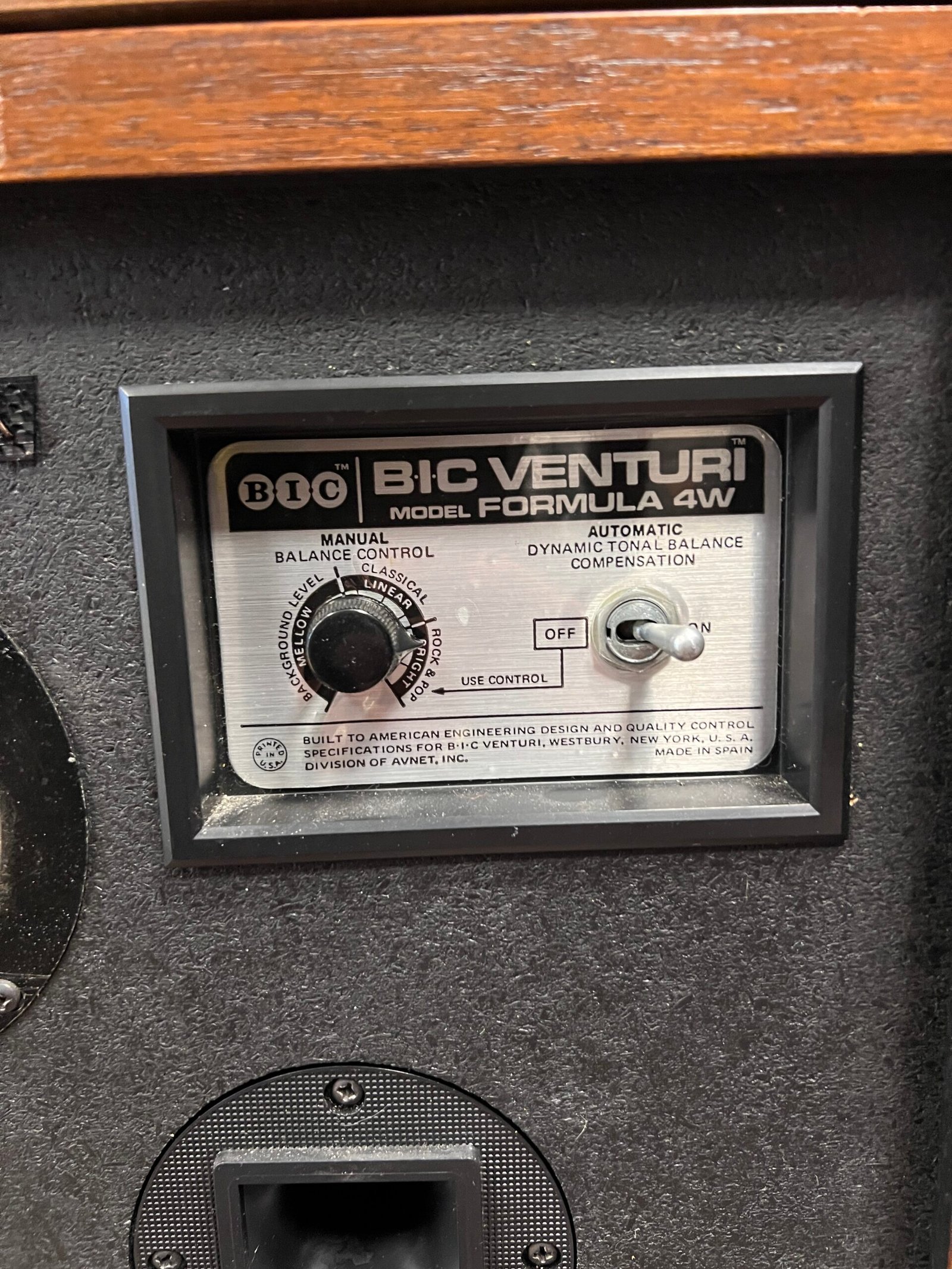 Le B.I.C. Venturi Formula 4 (spesso indicate come Formula 4W per la finitura in legno/walnut) sono diffusori da scaffale vintage di alta qualità prodotti negli Stati Uniti intorno alla metà degli anni ’70. Sono note per il loro design “Venturi” che migliora la risposta dei bassi e per la trasparenza del suono ad alto volume.