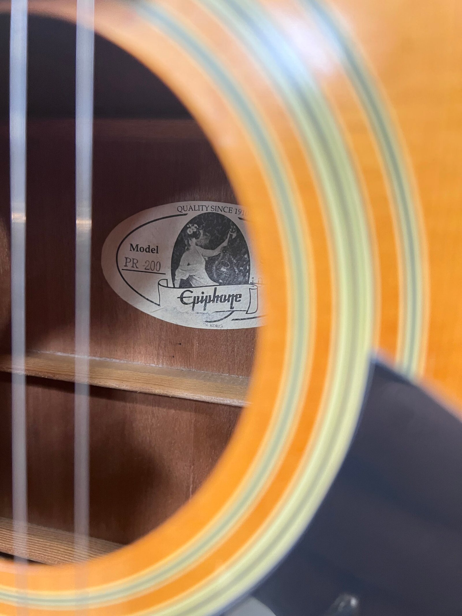 Chitarra acustica EPIPHONE PR-200 1993 costruita in Korea, suono fantastico, sono stati eseguiti lavori per amplificarla  dal proprietario, come da foto